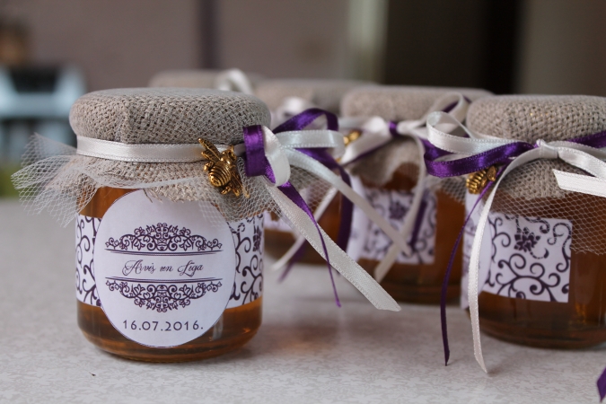 Reizēm darbi runā vairāk par vārdiem, un tādos īpašos svētkos kā kāzas pateikt paldies ikvienam viesim nereti ir grūti, tāpēc neliels paldies ar saldo gardumu, medu, būs tieši laikā. Medusbite.lv šovasar jau čakli pastrādājusi, lai palīdzētu Agnesei un Laurim viņu īpašajā dienā gādājot gan par saldā kāruma sagādāšanu dravā, gan īpaša burciņu noformējuma izstrādi, izveidojot atbilstošas etiķetes un vāciņu noformējumu, kas iekļāvās kopējā kāzu stilistikā.