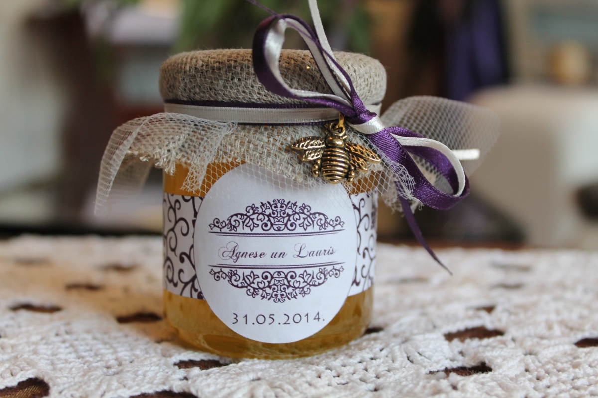 Reizēm darbi runā vairāk par vārdiem, un tādos īpašos svētkos kā kāzas pateikt paldies ikvienam viesim nereti ir grūti, tāpēc neliels paldies ar saldo gardumu, medu, būs tieši laikā. Medusbite.lv šovasar jau čakli pastrādājusi, lai palīdzētu Agnesei un Laurim viņu īpašajā dienā gādājot gan par saldā kāruma sagādāšanu dravā, gan īpaša burciņu noformējuma izstrādi, izveidojot atbilstošas etiķetes un vāciņu noformējumu, kas iekļāvās kopējā kāzu stilistikā.