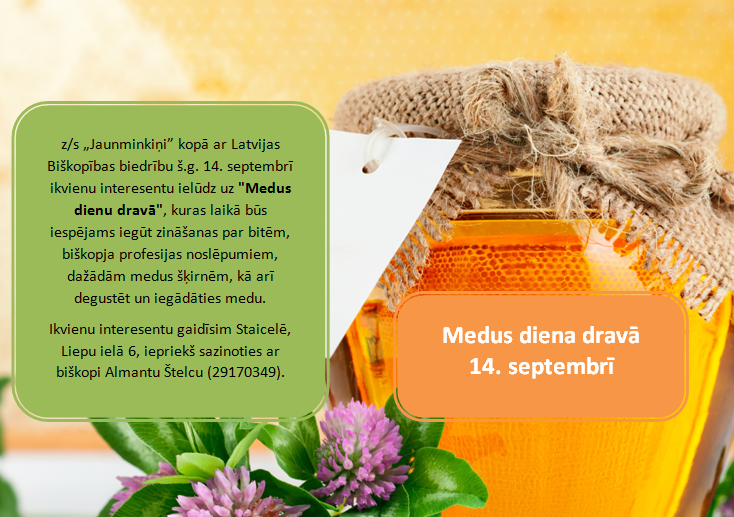 Latvijas Biškopības biedrība ir aizsākusi jaunu tradīciju - "Medus dienu dravā", kad bitenieki no dažādiem Latvijas novadiem ver savas dravas ikvienam apmeklētājam. Šogad tas būs 14. septembris. Dravā būs iespējams iegūt zināšanas par bitēm, biškopja profesijas noslēpumiem, dažādām medus šķirnēm, uzzināt kā rodas medus, degustēt un iegādāties to. Medusbite.lv šajā pasākumā piedalās jau otro gadu un arī šogad stāstīs, ko bites paveikušas šajā vasarā un cienās viesus ar saldo kārumu!