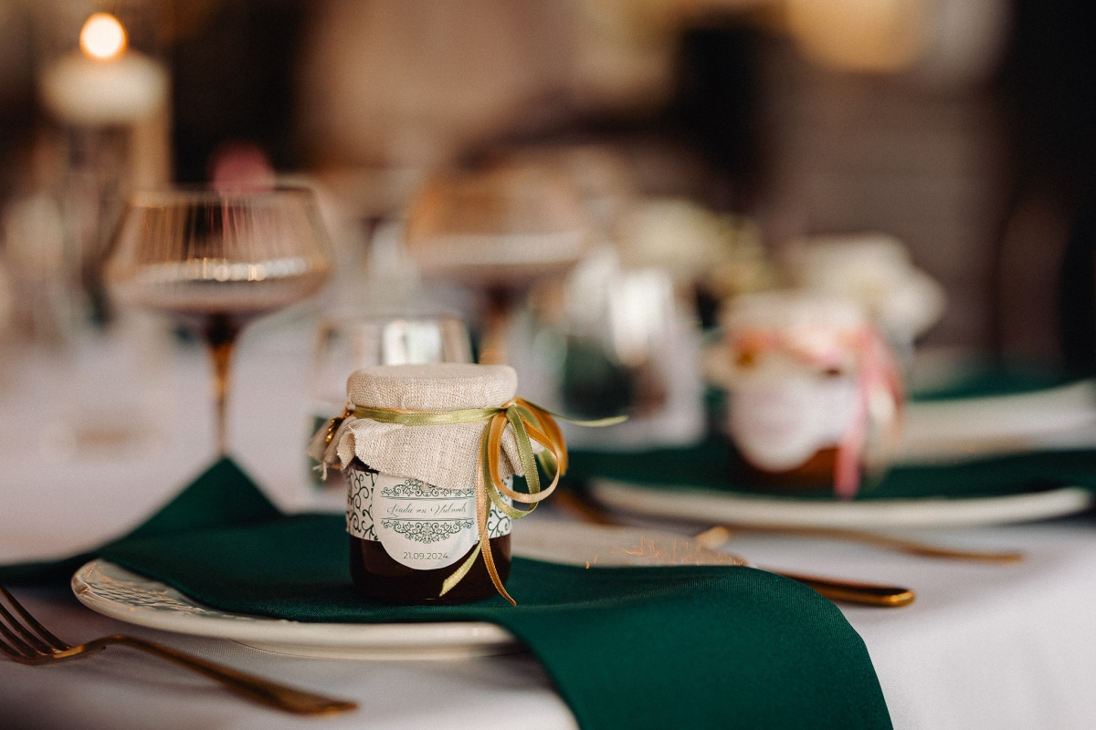 2024. gada rudenī Medusbite.lv iepriecināja Lindas un Vidvuda kāzu viesus, sagatavojiet divu atšķirīga noformējuma personalizētas medus burciņas kā sveicienu viesiem no jaunā pāra - viršu ziedu medu zaļā noformējumā un dažādu ziedu medu rozā noformējumā.