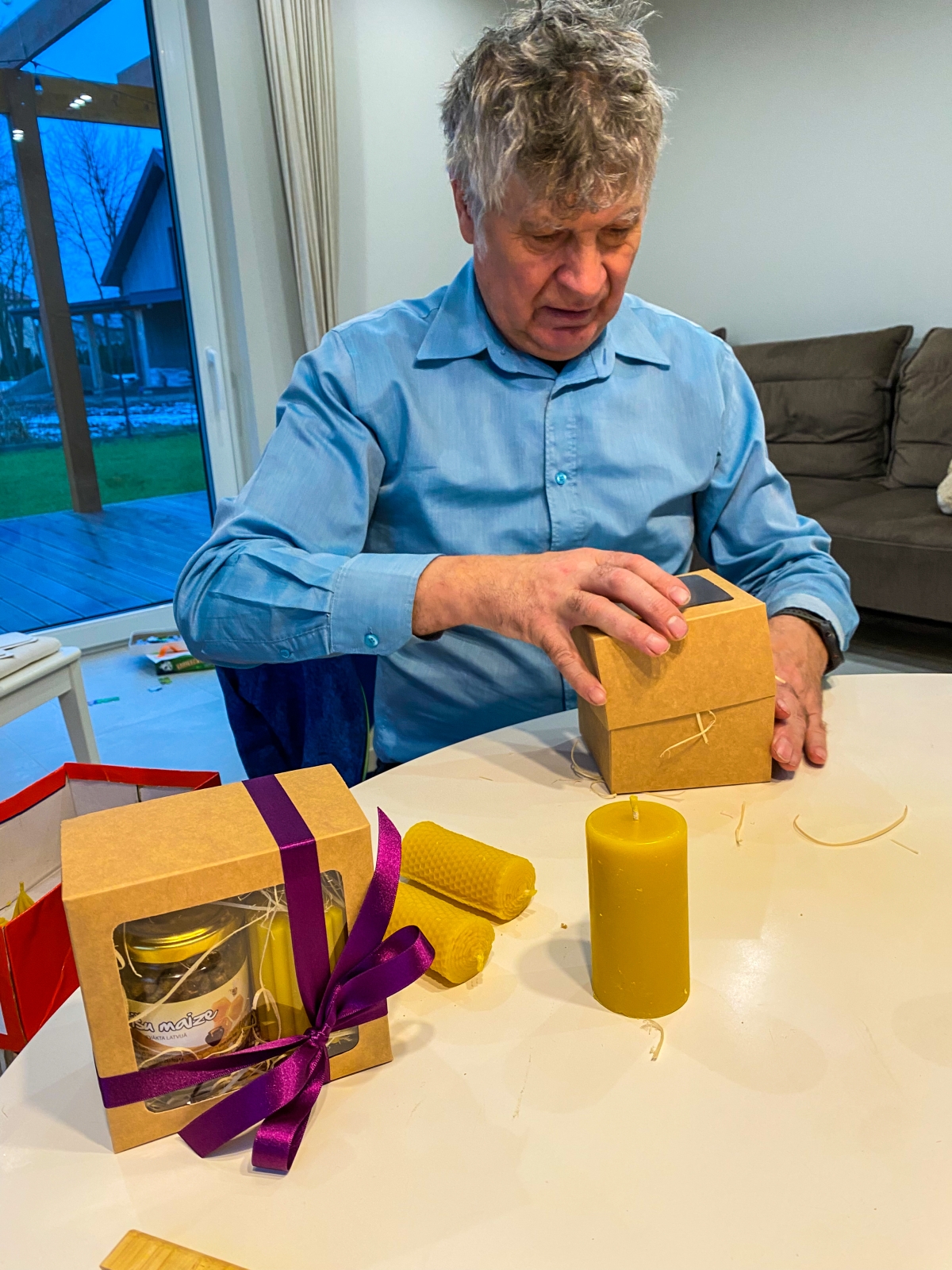 2025. gada Pirmā advente aizvadīta darbīgi - aromātisko bišu vaska sveču smaržas ieskaiti pakojām pasūtītās bišu vaska drāniņas un sagatavojām svētku laika dāvanu komplektus.