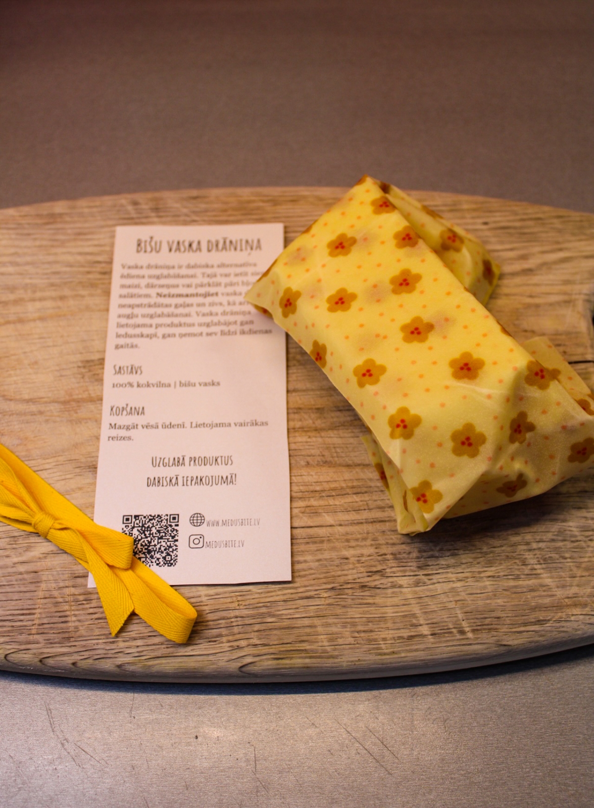 Sastāvs: 100% kokvilnas audums, bišu vasks.